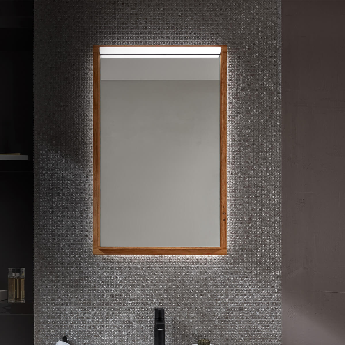 LED-Leuchtspiegel rund mit Schalter im Glas, 900 mm